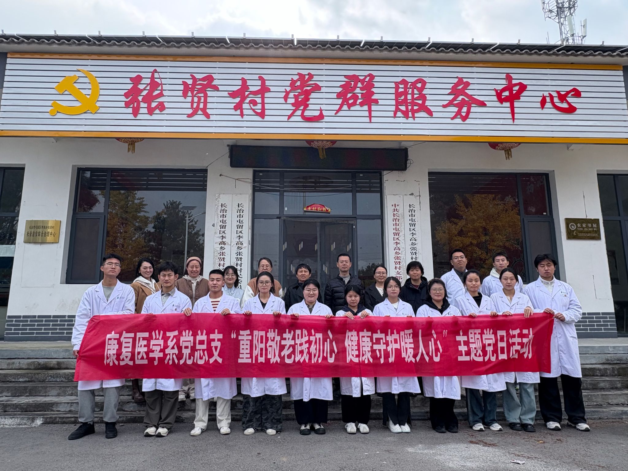 在重阳节来临之际,康复医学系党总支组织师生志愿服务,走进长治市屯留区张贤村,开展“重阳敬老践初心,健康守护暖人心”主题党日活动,为村中老年群体提供暖心义诊服务。义诊现场秩序井然,测血压、中医问诊、康复评估等服务同步开展。为让健康知识更易被接受,志愿者们借助趣味教具,通过健康小游戏、互动问答等形式,将专业养生知识转化为通俗的生活常识,用欢声笑语传递科学健康理念,让健康服务真正接地气、入人心。考虑到村里部分高龄老人行动不便、...