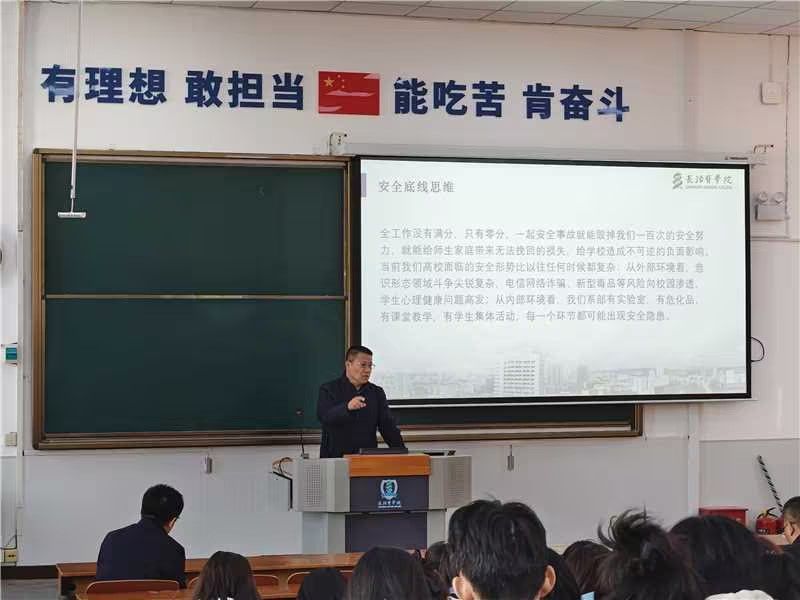 启动仪式上,学校保卫部部长张天云以“抓细抓实系部安全管理 护航校园安全稳定大局”为题作专题讲座,为活动开展筑牢思想根基、明确实践方向。讲座紧密结合校园安全工作实际,围绕强化安全意识、明确核心责任,聚焦关键领域、精准防范风险,完善工作机制、筑牢制度防线,强化隐患预判、提升应急能力四大关键维度,进行了全面系统、深入浅出的剖析讲解。讲座强调,实验室安全工作要树立前瞻性思维,下好安全防范“先手棋”,通过常态化应急演练与专项培训,持续提升全体教职工应对安全突发事件的快速处置能力,确保关键时刻拉得出、用得上、处置好,全力守护校园安全稳定。