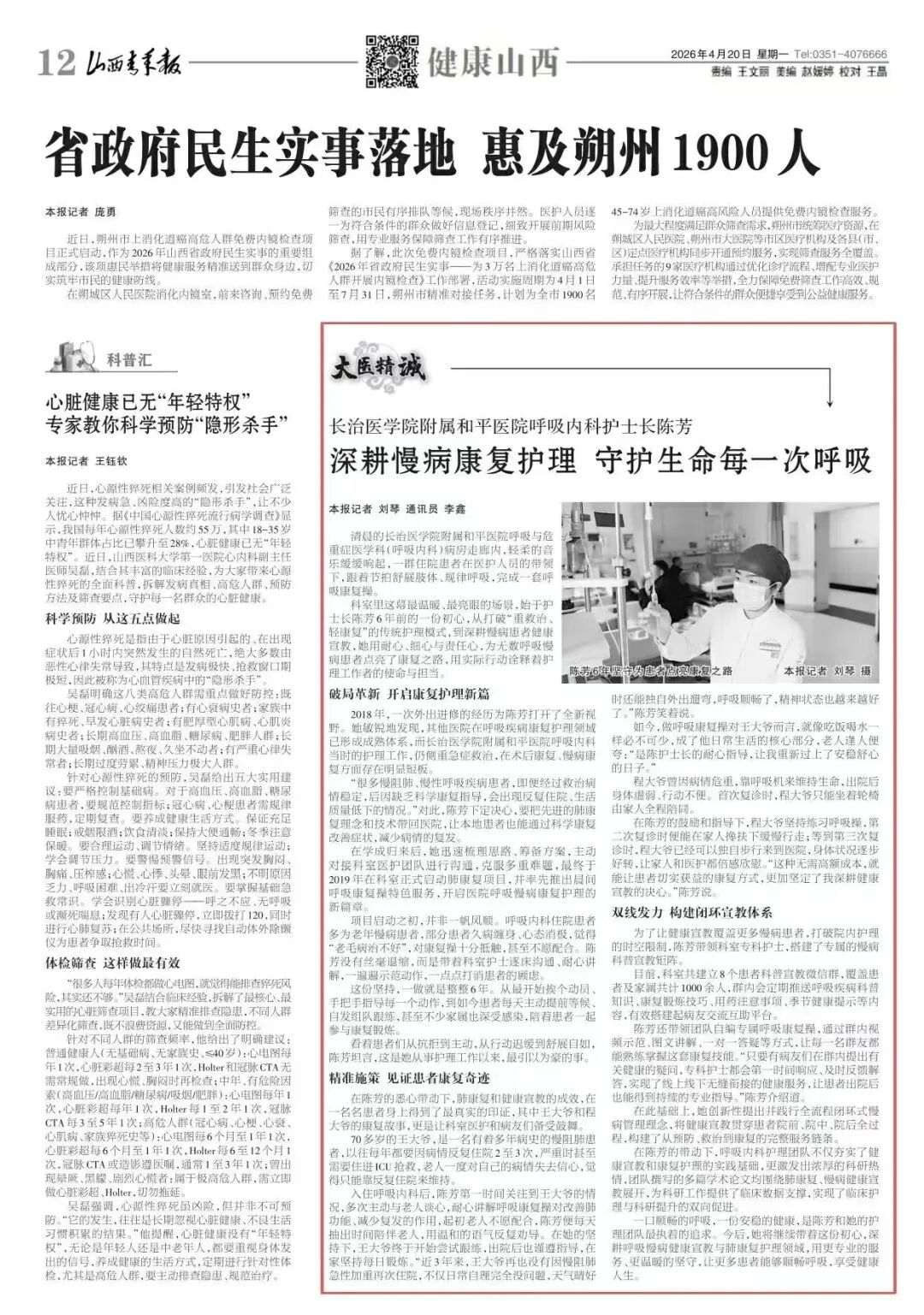一口顺畅的呼吸,一份安稳的健康,是陈芳和她的护理团队最执着的追求。今后,她将继续带着这份初心,深耕呼吸慢病健康宣教与肺康复护理领域,用更专业的服务、更温暖的坚守,让更多患者能够顺畅呼吸,享受健康人生。