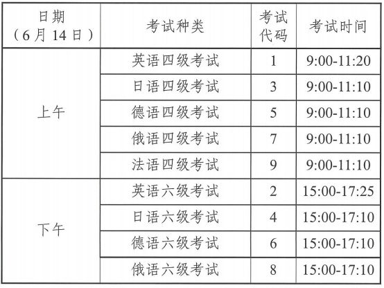 2025年6月14将举行全国大学英语四六级考试,现将有关报名事项通知如下:
