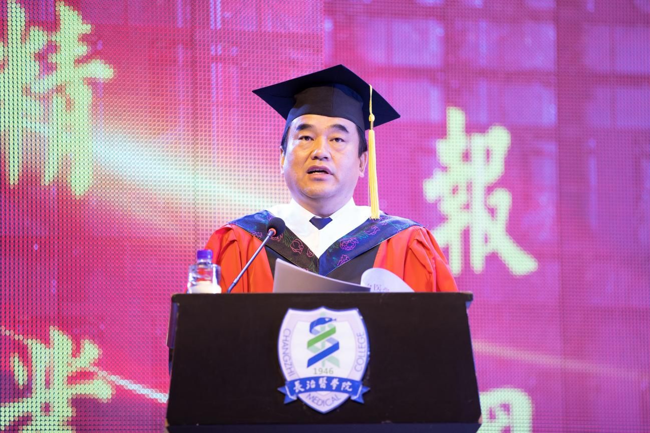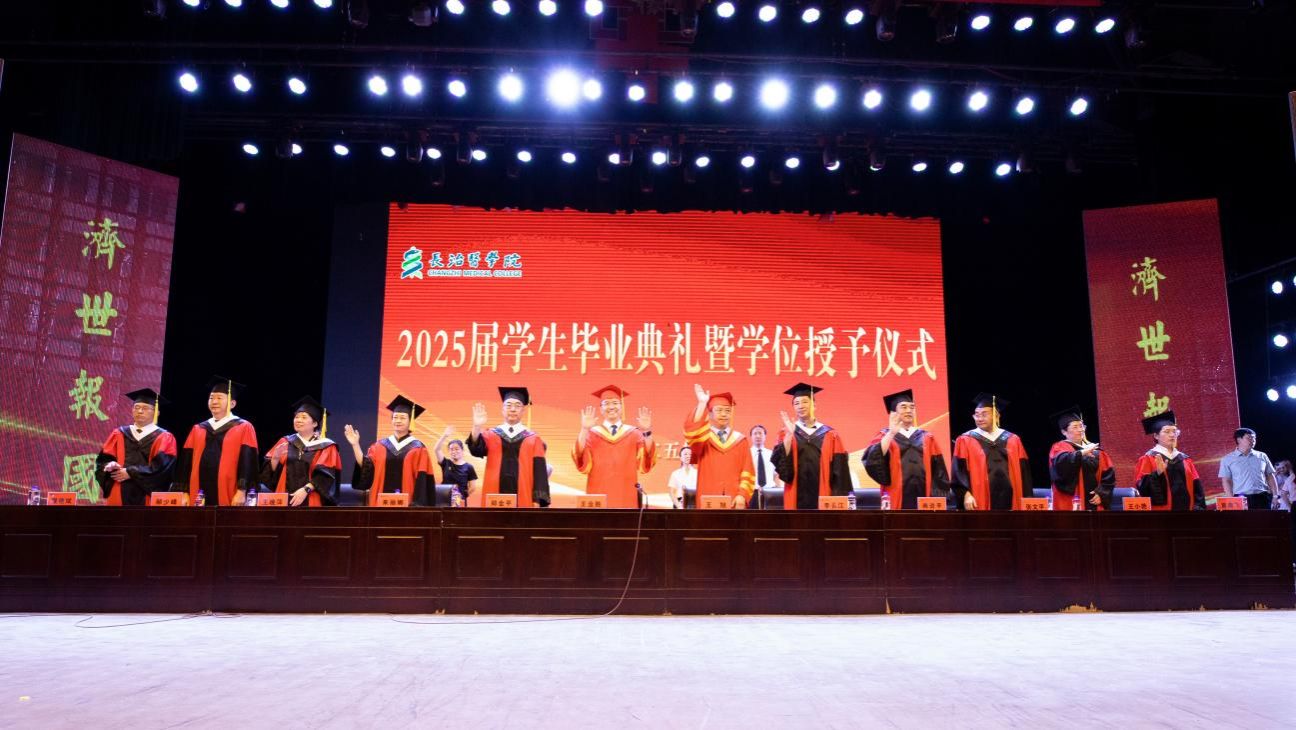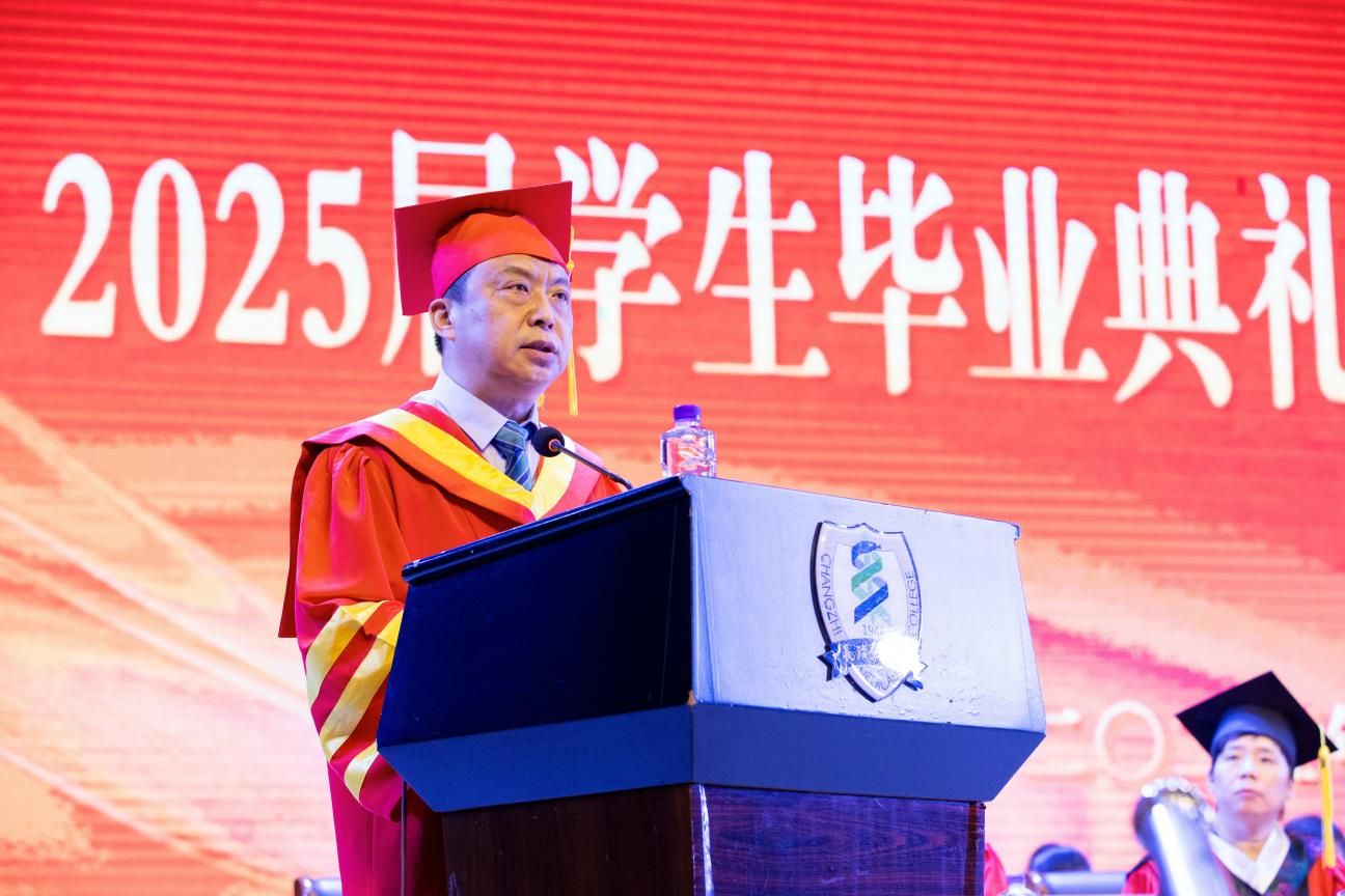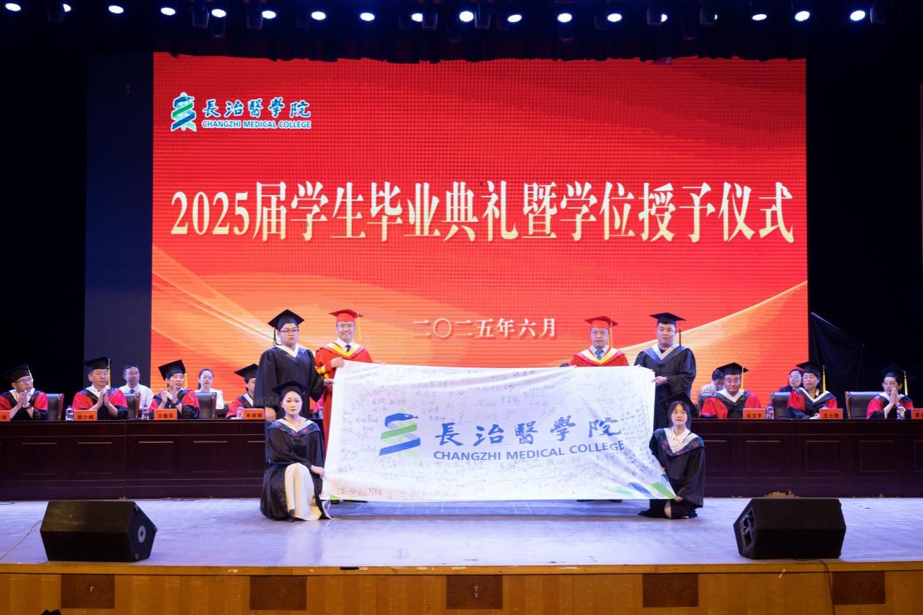 6月24日,长治医学院2025届学生毕业典礼暨学位授予仪式在学校科学会堂举行。全体校领导、各二级院系(部)党政领导、全体辅导员、应邀专程返回母校的优秀校友代表以及学生家长共同见证3532名毕业生满载收获、启航人生新征程的重要时刻。党委书记王金胜主持典礼。