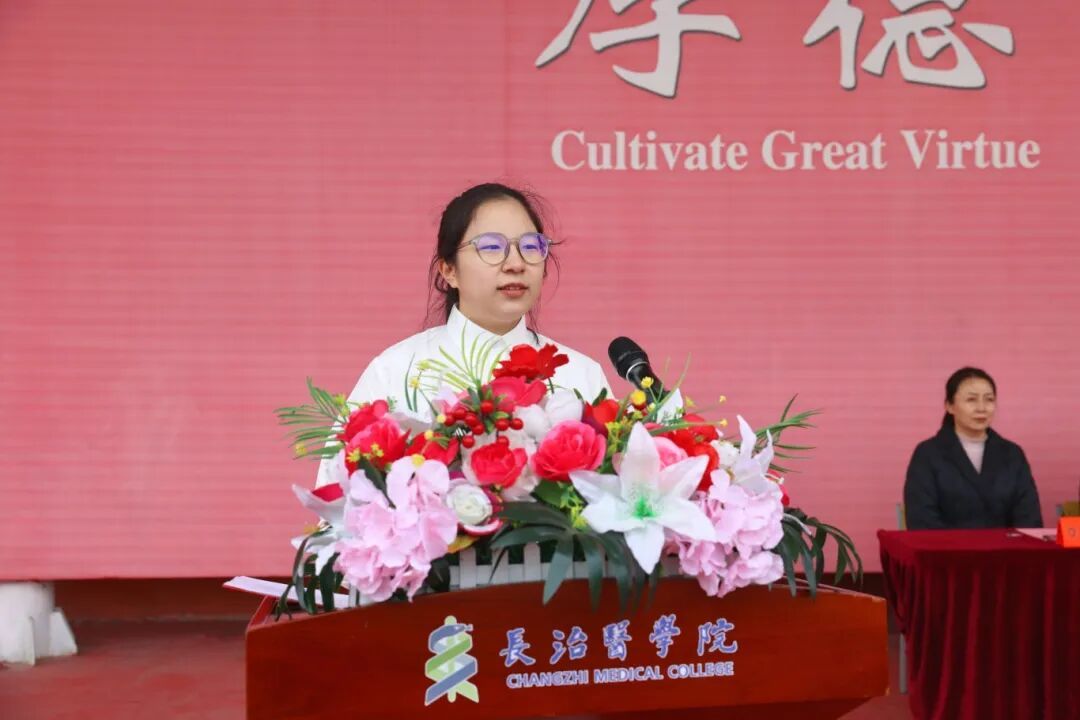 教师代表曹文君教授以“引路人”的身份,向新生致以热烈祝贺与诚挚欢迎。她承诺将以扎实的学识、敬业的初心为学生传道授业,用温暖的关怀陪伴大家成长,并寄语新生:既要学会“主动吃苦”,在磨砺中沉淀自我;更要做到“立即行动”,在实干中追逐梦想,在长医收获充实而有意义的时光。