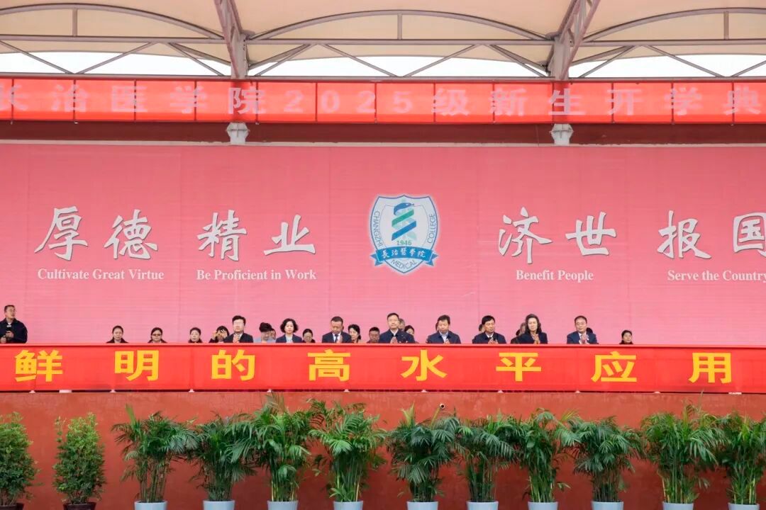 “晴空一鹤排云上”的秋日豪情尚在,“逐梦杏林赴远方”的青春壮志已燃。9月19日上午,2025级新生开学典礼在五龙校区举行,校党委书记王金胜,党委副书记、校长王旭,副校长李长江,党委常委、副校长来丽娜,上党区副区长王练兵,上党区苏店镇、南董村相关负责人,学校各职能部门、临床学院及校本部院系(部)负责人齐聚一堂,共同见证2025级新生逐梦新征程的重要时刻。校党委书记王金胜主持典礼。
