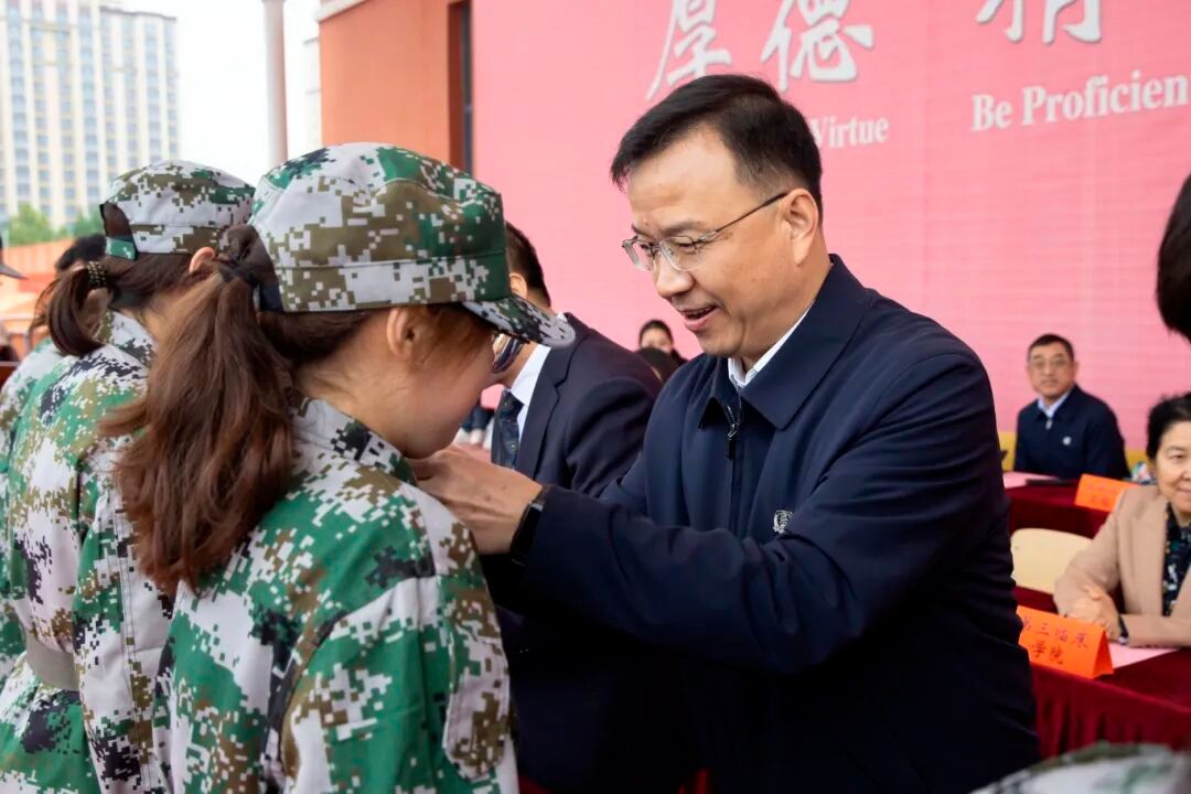 随后的校徽佩戴仪式,成为新生融入长医的“成人礼”。这枚小小的校徽,既是长医人的身份标识,更是“厚德、精业、济世、报国”校训的具象传承,宣告着新生正式成为长医大家庭的一员,更寄托着学校对他们坚守从医初心、在医学征途上砥砺前行的深切期许。