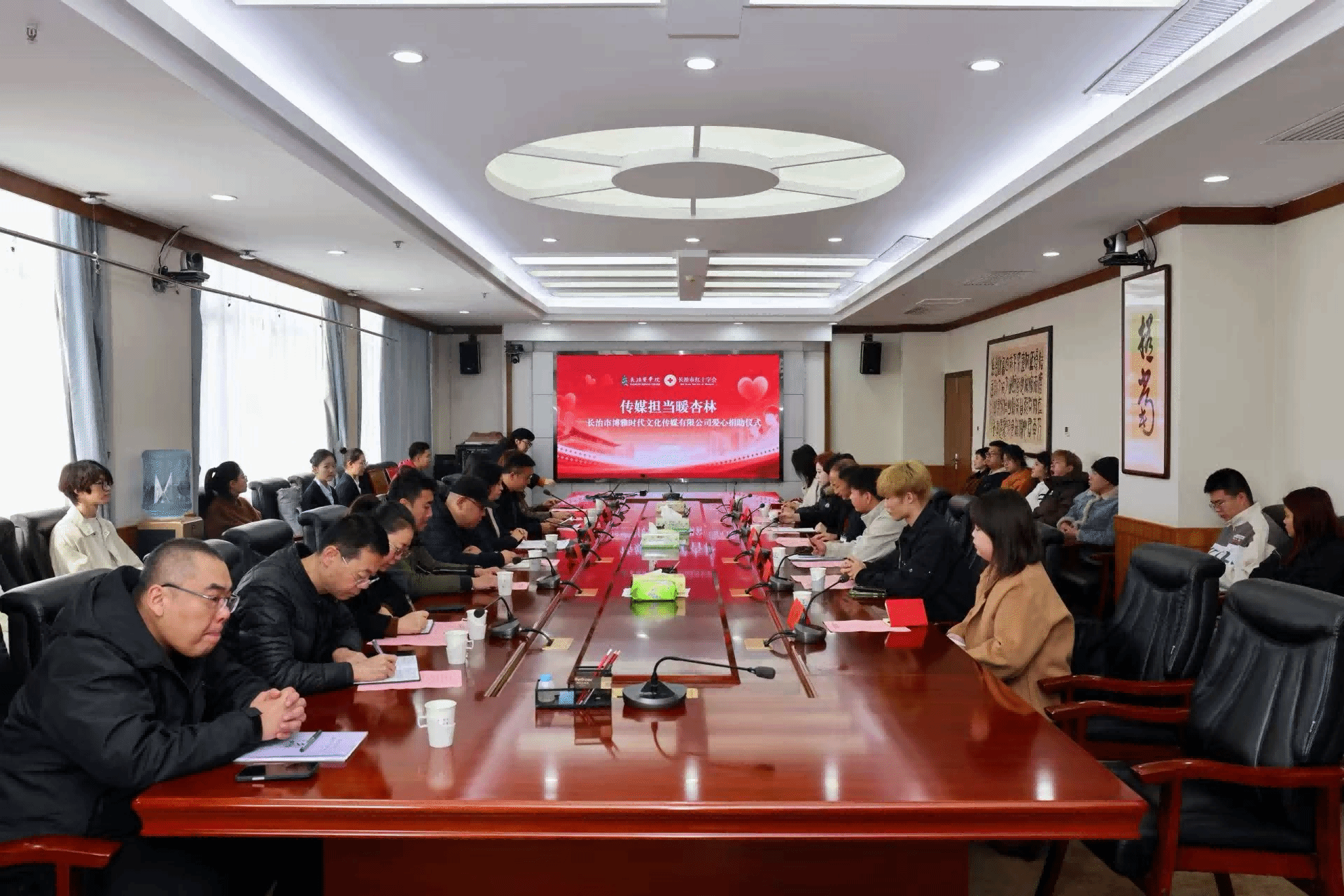 10月28日上午,“传媒担当暖杏林”爱心捐助仪式在我校举行,长治市博雅时代文化传媒有限公司通过长治市红十字会向我校捐资助学,用于奖励品学兼优的贫困大学生。博雅时代总经理暴易航,长治市红十字会党组成员、四级调研员高彦民,校党委常委、副校长来丽娜出席仪式,学工部及各院系师生代表参加,仪式由学工部副部长李永平主持。