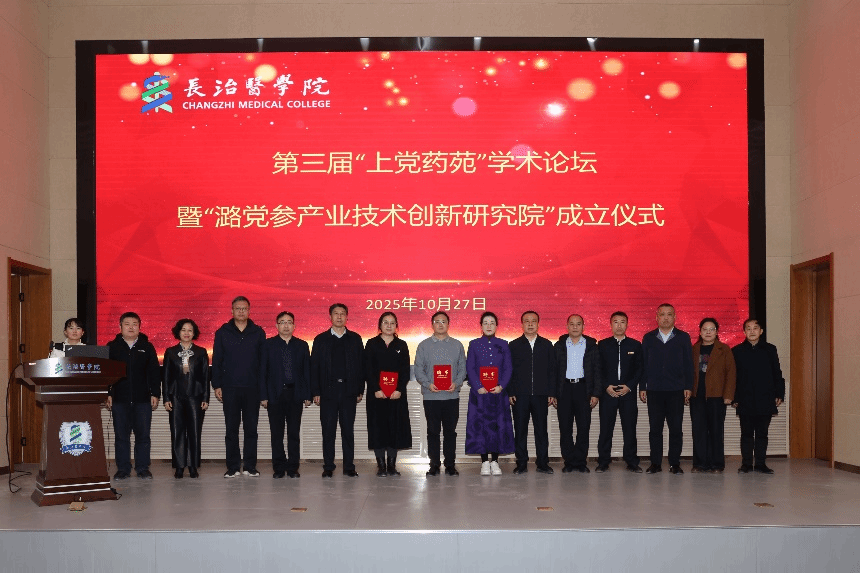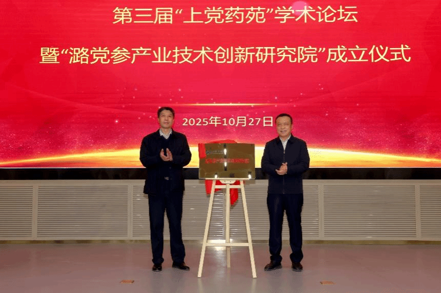 论坛上,王旭与长治市科技局副局长文代云共同为“潞党参产业技术创新研究院”揭牌,并为张磊教授、王升研究员、胡芳弟教授颁发了研究院学术委员会聘书。研究院的成立,标志着我校在推动上党地区道地药材资源转化与产业升级方面迈出了重要一步。
