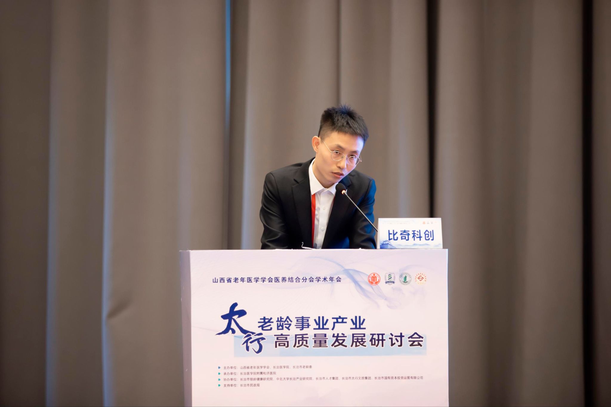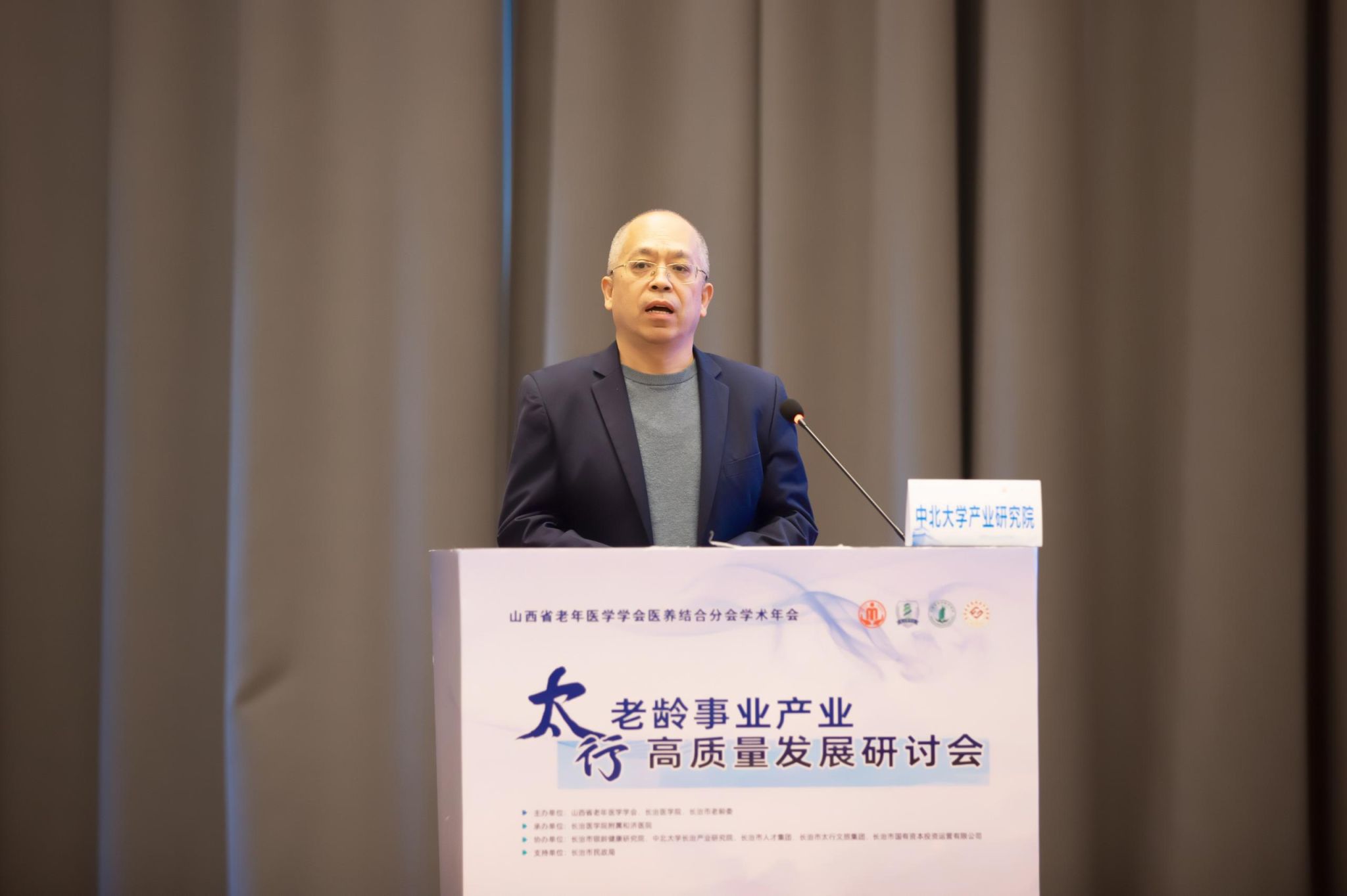 长治医学院党委书记王金胜教授在致辞中代表主办方对与会嘉宾表示热烈欢迎。他强调了长治医学院作为地方医科院校的社会责任与使命,指出学校始终将服务区域老龄事业作为办学的重要方向。通过加强老年医学学科建设、共建银龄健康研究院、成立智慧康养产业学院等一系列举措,学校致力于构建“医、教、研、产”融合发展的创新生态,为区域老龄事业和产业高质量发展提供坚实的人才与科技支撑。