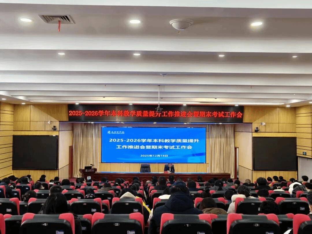 12月18日,我校2025-2026学年本科教学质量工作推进会在济世厅召开。校党委副书记、校长王旭出席会议并讲话,教务部部长韩玲娜主持会议。学生工作部、教务部、教学质量监控与评估中心全体人员,各院系(部)党总支正副书记、主任、分管教学副主任、教学科研科科长、教研室主任及全体辅导员参会。