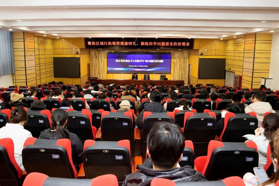 为进一步凝炼科学问题、提升科研创新能力,推动学校科技进步奖申报与科研高质量发展,12月28日上午,我校在济世厅举办“聚焦区域污染毒理健康研究,凝练科学问题服务防控需求”科研能力提升专题讲座。讲座特邀环境毒理与健康研究领域知名专家桑楠教授担任主讲人,吸引众多教师和研究生积极参与。副校长来丽娜主持本次讲座。