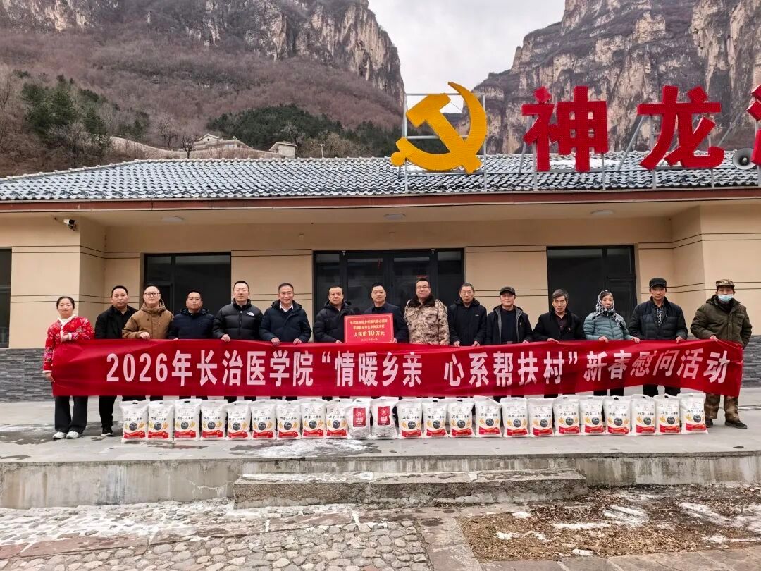 1月14日,党委书记王金胜、校长王旭、党委副书记郑金平一行分别赴平顺县东寺头乡寺头村、神龙湾村,开展“情暖乡亲 心系帮扶村”新春慰问活动,向村民们送上节日祝福、慰问物资和长医干部群众捐赠的爱心款,并围绕乡村振兴工作开展专题调研。组织部部长王黎刚,党委(院长)办公室主任邢育宏陪同慰问,平顺县人大常委会主任王建中、县生态文化旅游示范区管委会常务副主任桑宏亮,东寺头乡党委书记张璞、乡长宇文杰等地方领导共同参加活动。