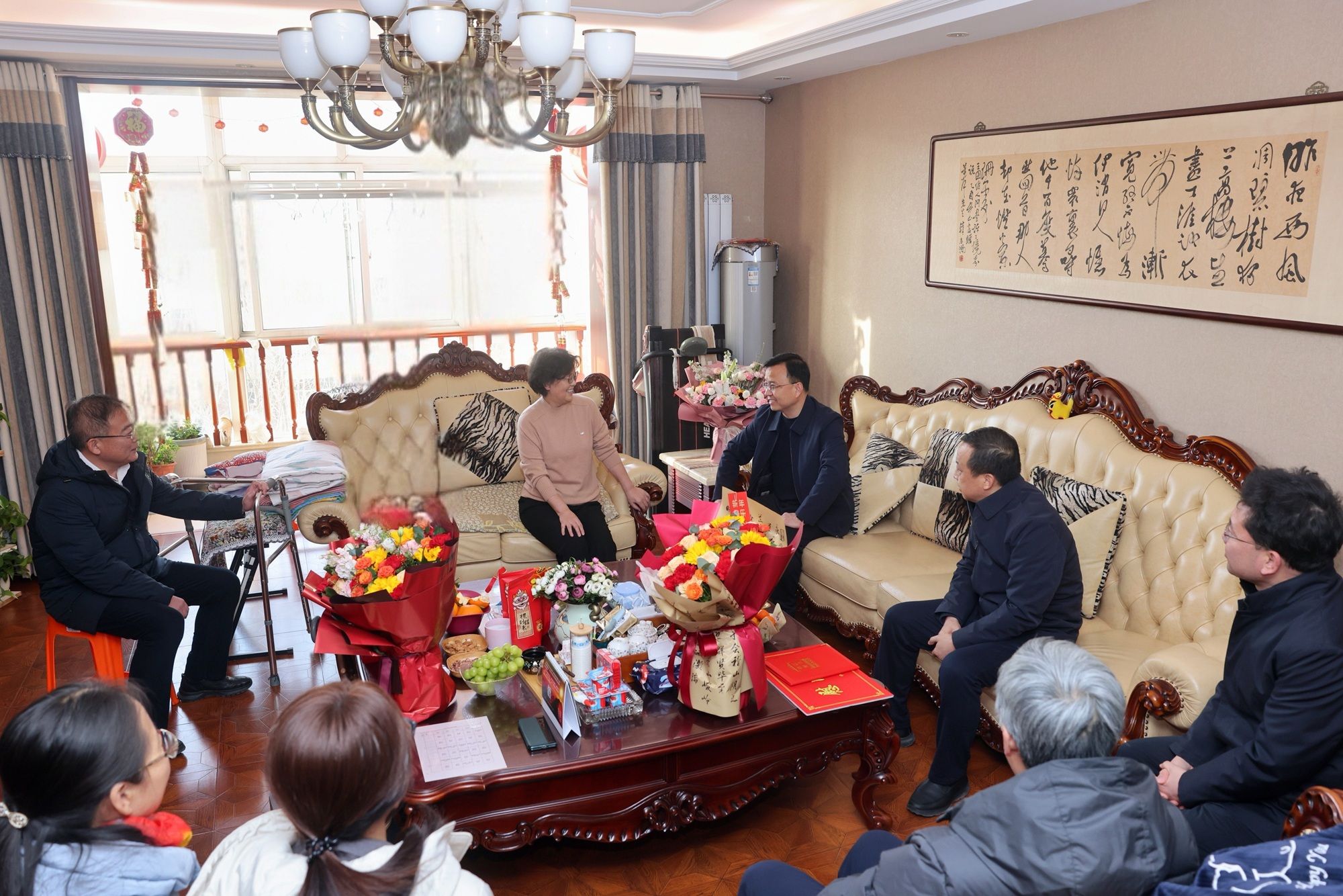 新春将至,暖意先行。2026年新春佳节来临之际,1月16日上午,校党委书记王金胜,党委副书记、校长王旭,党委副书记郑金平,党委常委、纪委书记、监察专员段发明,党委常委、副校长尚进平等校领导带队走访慰问老党员、老干部、生活困难党员、困难职工和全省优秀共产党员,为他们送去组织的关怀与温暖,并致以节日问候和新春祝福。党委(院长)办公室、组织部(党校)、离退休人员管理部、工会等部门负责同志陪同走访慰问。